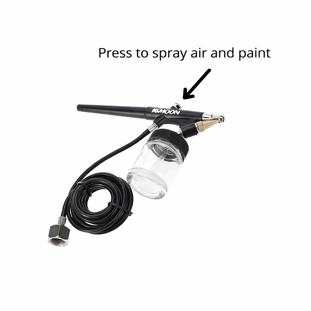 First and foremost, you need to make sure you’re mixing your paints to the right consistency. Ideally, you should push a little paint from the bottom of the airbrush cup up to the edges.